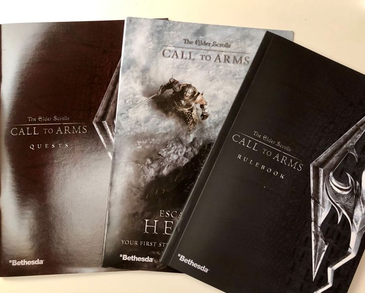 Als erstes halten wir einen Satz von drei Büchern in der Hand: ein Schnellstart (der an die Einstiegsszene von The Elder Scrolls V – Skyrim angelehnt ist), ein gut 100-seitiges Regelbuch und das Quest-Buch mit 12 Szenarien und mehreren Vorschlägen, diese zu Kampagnen zu formen. Die Bücher sind allesamt durchgängig farbig mit jeder Menge Grafiken und Illustrationen gestaltet. Der Druck ist auch hier als hochwertig zu bezeichnen.