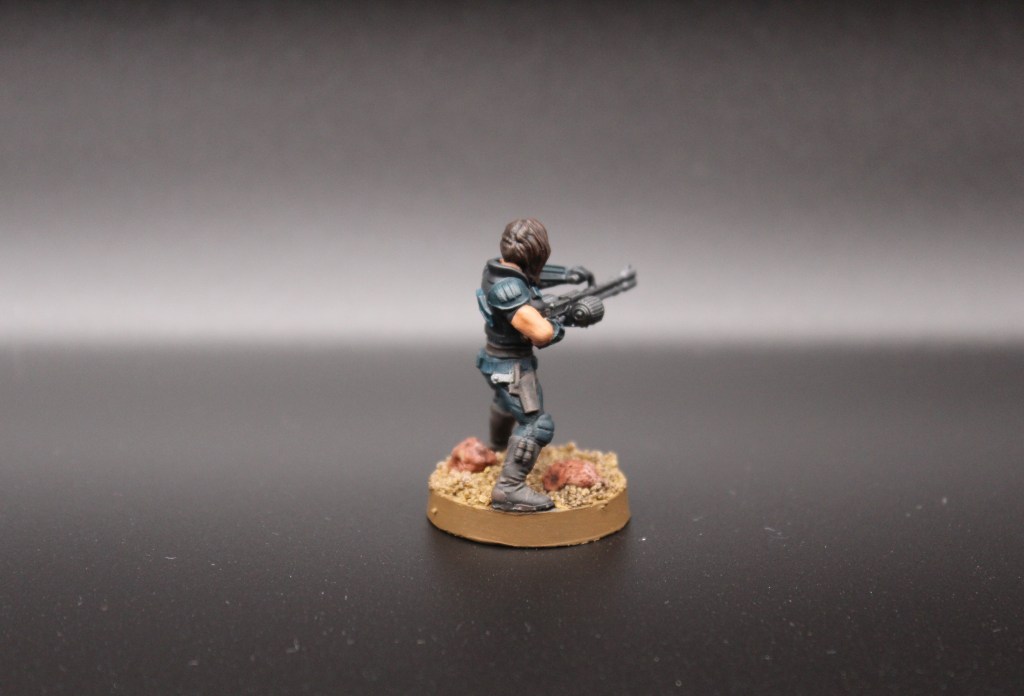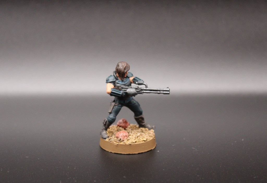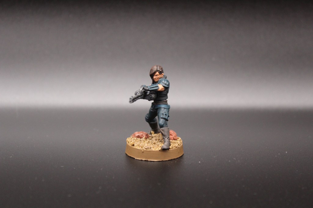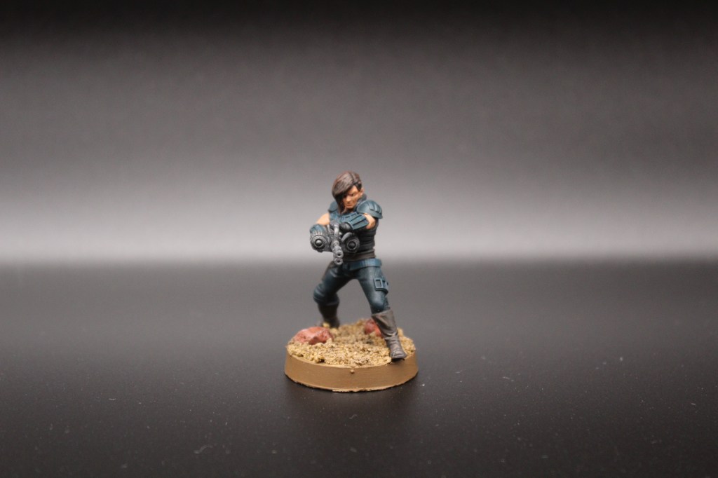 Auch wenn die Figur der Cara Dune aus der Serie entfernt wurde, so finde ich sie in den existierenden Staffeln interessant genug, um eine passende Miniatur in meine Sammlung aufzunehmen. Auch hier möchte ich gar nicht zu viele Worte zur Bemalung verlieren. Mit der Airbrush gab es zunächst eine Grundfarbschicht mit VMA Dark Blue Grey. Auf die ganzen Teile der Rüstung habe ich dann mit dem Pinsel Incubi Darkness von Citadel aufgetragen, da die Rüstung einen türkisenen Farbton haben soll. Ich bin mit dem Ergebnis zufrieden, wobei die Highlights der Rüstung etwas stärker hätten herausgearbeitet werden können. Hier nun das Ergebnis.