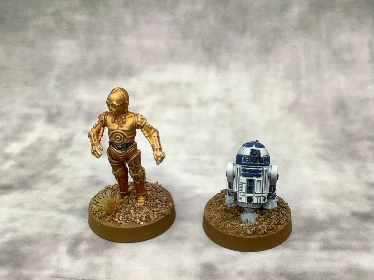 Ich bin noch immer mit dem Ausheben einer Rebellenarmee für Star Wars Legion beschäftigt. Heute geht es um die wohl bekanntesten Droiden der weit entfernten Galaxis, R2-D2 und C-3PO.