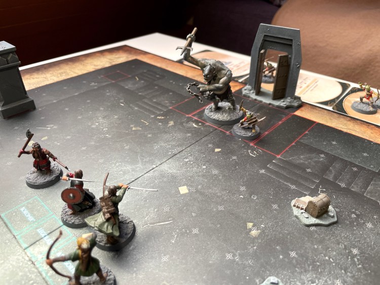 Legolas eilt Frodo zu Hilfe, sein Pfeil trifft allerdings nicht. Da muss dunkle Hexerei (oder Würfelpech) im Spiel sein! Dafür bezwingen Gimli, Gandalf und Boromir den Troll, wobei Boromir den entscheidenden Treffer landet.