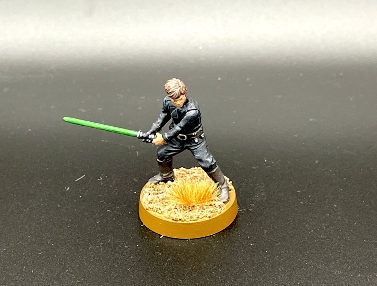 Als nächstes stand Luke in seiner gereifteren Version aus „Die Rückkehr der Jedi-Ritter“ auf dem Maltisch. An dieser Figur gefällt mir besonders gut, wie das Gesicht von Mark Hamill auf die Figur übertragen wurde. Maltechnisch bestand hier die Herausforderung in der schwarzen Kleidung von Luke. Ich denke, es ist mir mit den sehr dunklen Grautönen recht gut gelungen. Kopf und Lichtschwert liefern einen guten Kontrast.