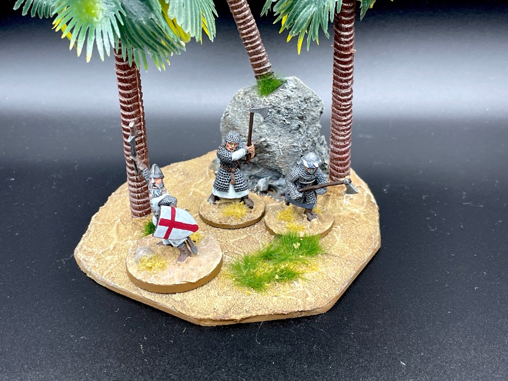 Mit dem letzten Beitrag habe ich mein SAGA-Armeeprojekt zu den Kreuzzügen begonnen. Nachdem Anführer und Bannerträger fertiggestellt sind, braucht es ein paar Truppen. Das Ausheben startet mit eine Gruppe Veteranen mit Zwei-Hand-Waffen.