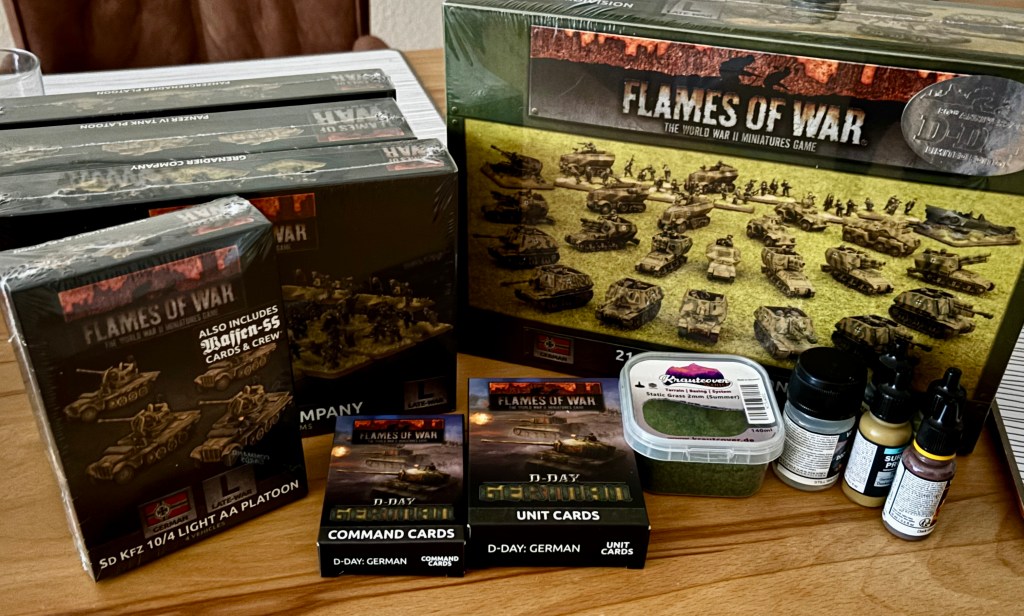 Der Jahreswechsel ist in unserem Hobby oft der Anfang für neue Projekte und ich möchte keine Ausnahme sein. Mit einem Freund konnte ich dieses Jahr einige Spiele mit dem Regelsystem „Flames of War“ von Battlefront Miniatures spielen. Das System kenne ich schon länger, bin allerdings nie mit einer eigenen Armee eingestiegen. Doch nun wird sich das ändern. Ich habe mir die Armeebox der 21. Panzerdivision, die anlässlich des 80. Jahrestages der Invasion in der Normandie herausgegeben wurde, gekauft. Diese enthält viele Modelle, die aus Beutefahrzeugen entstanden sind. Und genau das gefällt mir so an dieser Box. Sie bringt Abwechslung in die sonst eher von Großkatzen geprägten Listen. Ein bisschen Verstärkung und Hobbymaterial sind ebenfalls schon von mir besorgt worden.