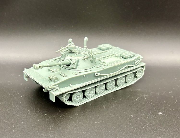 Für mein letztes Fahrzeug, dass im Rahmen der Challenge bemalt werden soll, müssen wir den Maßstab von 15mm auf 28mm wechseln. Und wir wechseln von der Zeit des zweiten Weltkriegs in die Zeit des Vietnam-Kriegs. Schon seit längerem arbeite ich hin und wieder an verschiedenen Minis dafür (irgendwann gibt es dazu auch ein paar Beiträge) und für die nordvietnamesische Armee (PAVN) möchte ich einen PT-76 Panzer bemalen. Der PT-76 ist als leichter Aufklärungspanzer konzipiert. Er ist ohne Vorbereitung schwimmfähig und kann auf fest eingebaute Wasserstrahler umschalten. Bereits in den 60er Jahren erhielt die nordvietnamesische Armee einige dieser Panzer von der damaligen Sowjetunion. Sie kamen beispielsweise bei der Belagerung von Khe San zum Einsatz. Mein Modell ist ein Bausatz von Rubicon und sehr detailliert. Die Box ermöglicht den Bau von insgesamt drei Varianten. Eine davon ist für Vietnam, die anderen für andere Armeen und Konflikte des Kalten Kriegs.