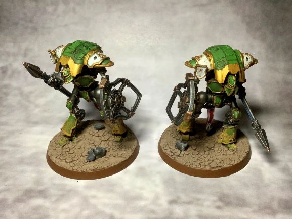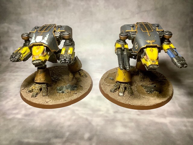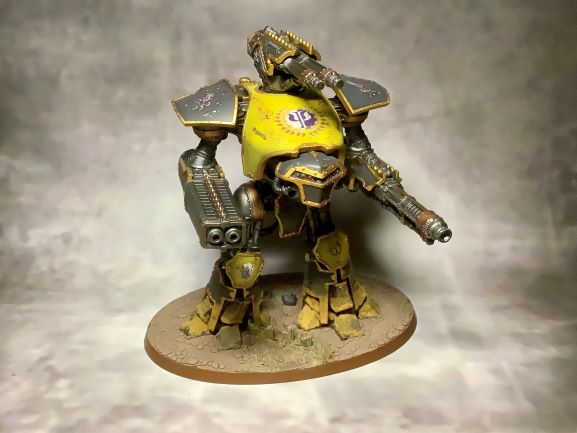 Nachdem im ersten Schritt die Warhound Titanen bemalt wurden, habe ich mir als nächstes die Knights aus der Startbox vorgenommen. Auch hier habe ich mich am absoluten „Standard“ orientiert und diese als Angehörige des Hauses Vyronii bemalt.